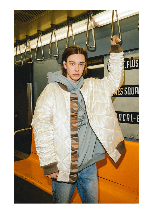 Camouflage 3D Pocket Ribbed Reversible Bomber Jacket
