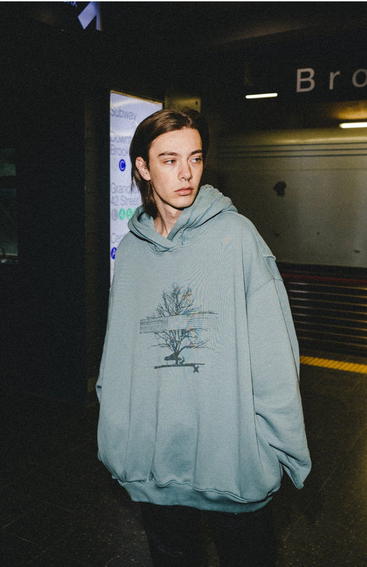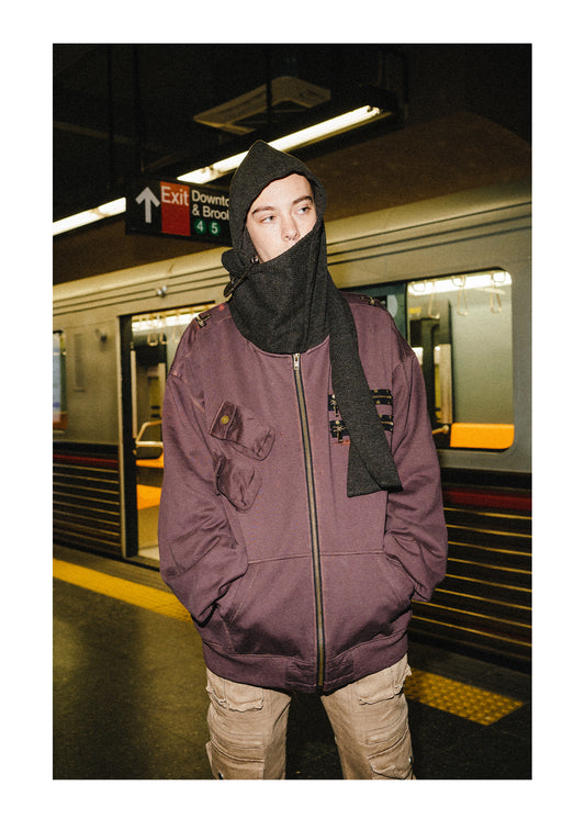 Retro Print Zipper Decorative Splicing Loose Niche Design Sweatshirt Hoodie