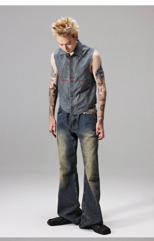 Washed Retro Rivet Stitch Knit Scarf Parka Jacket