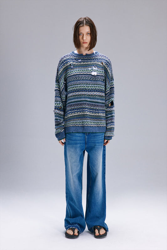 Retro ethnic style twist hole destruction sweater niche design knit sweater