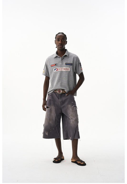Damage-Washed Denim Shorts