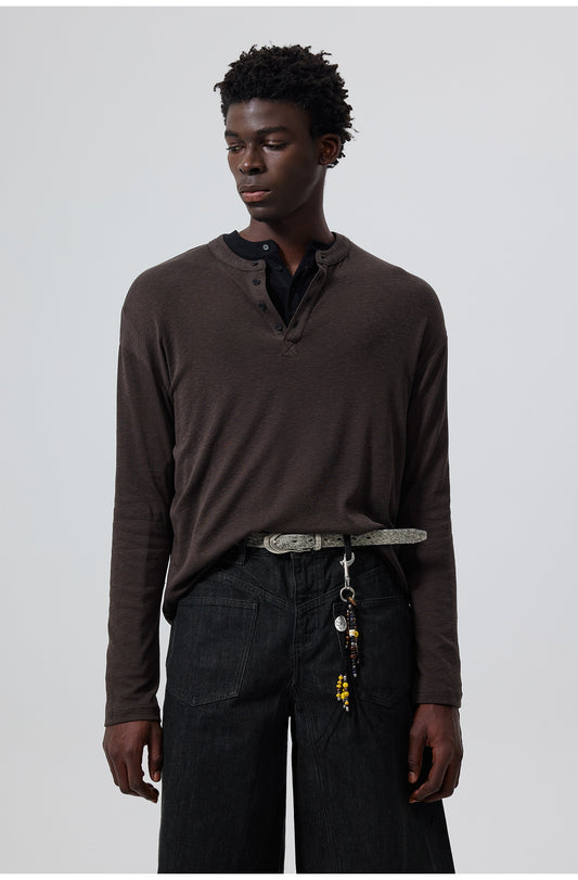 Cotton Blend Henley Collar T-Shirt