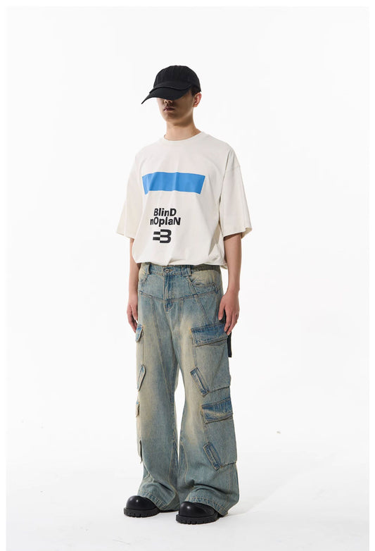 Damaged Wash Basic Pocket Mid Rise Denim Pants