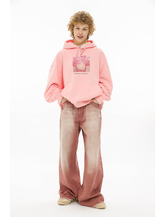 Retro Pink Heavy Wash Raw Edge Loose Wide Leg Jeans