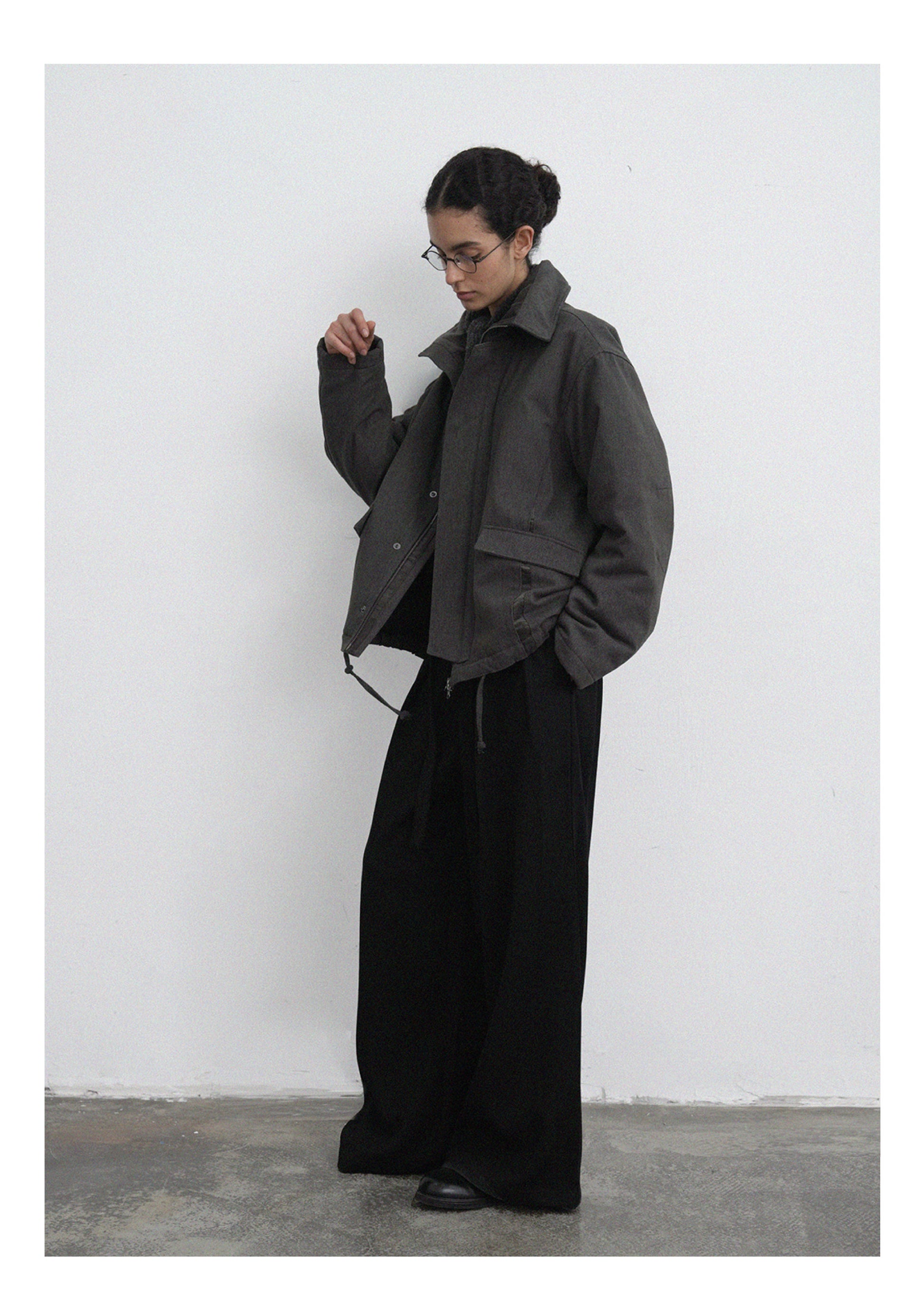 Fold-Down Collar Multi-Pocket Jacket