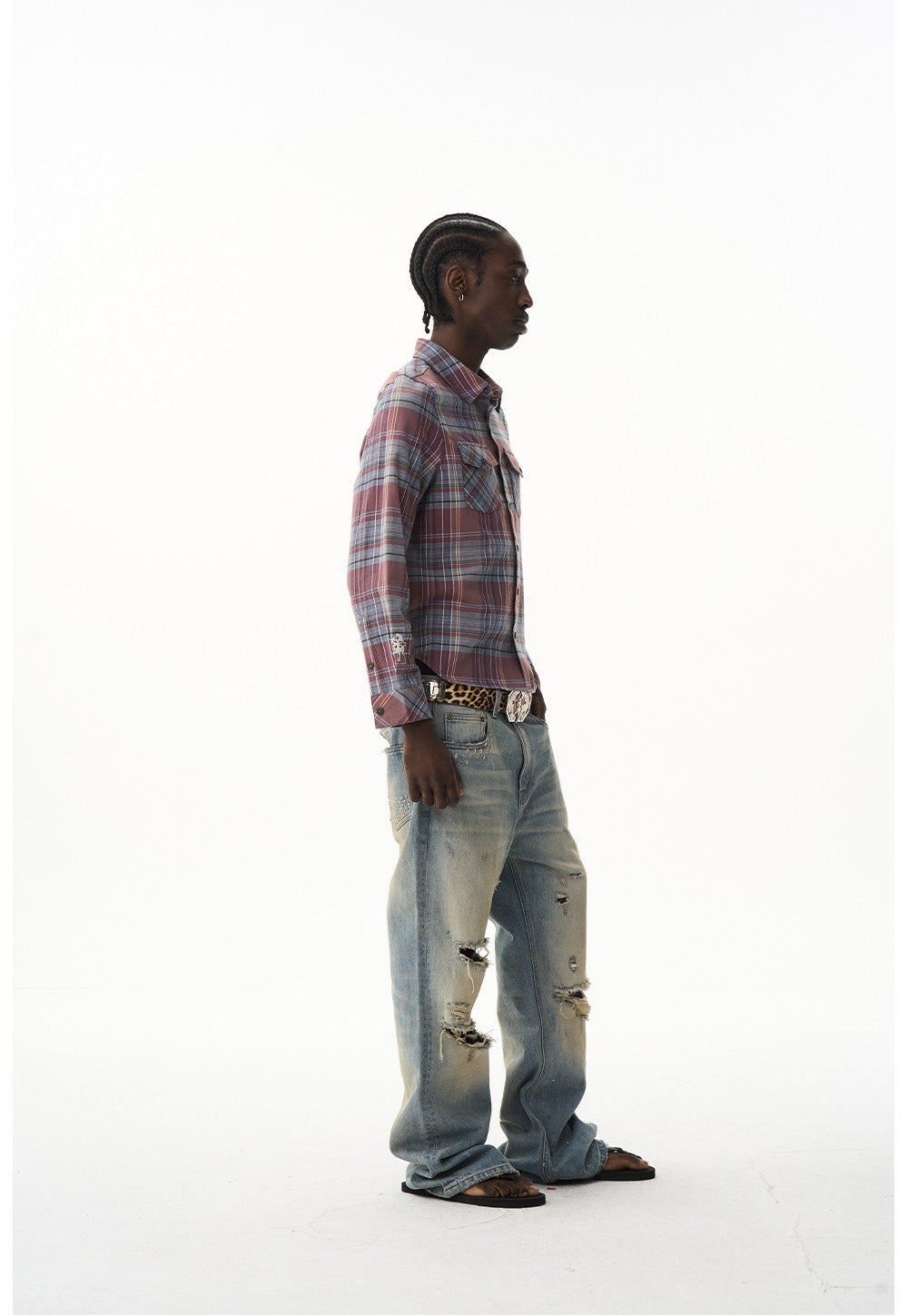 Short Check Embroidered Shirt
