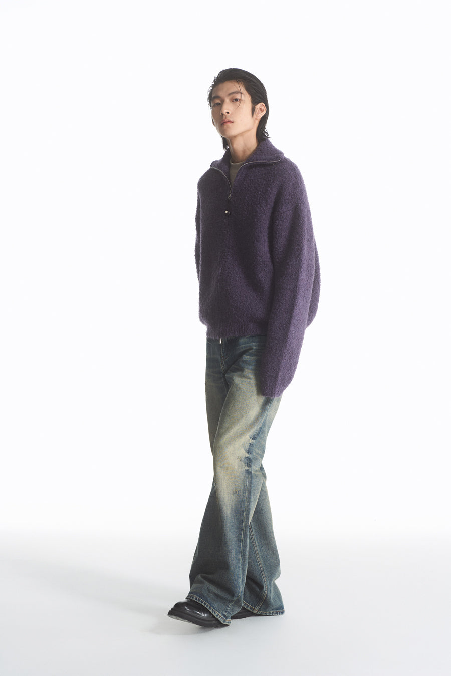 Wool blend zip cardigan
