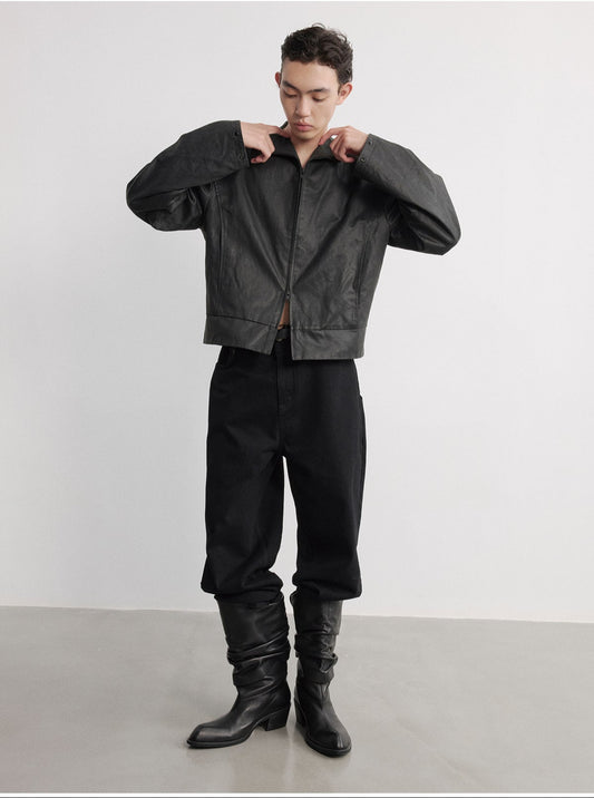 Threaded Sleeve Leather Jacket