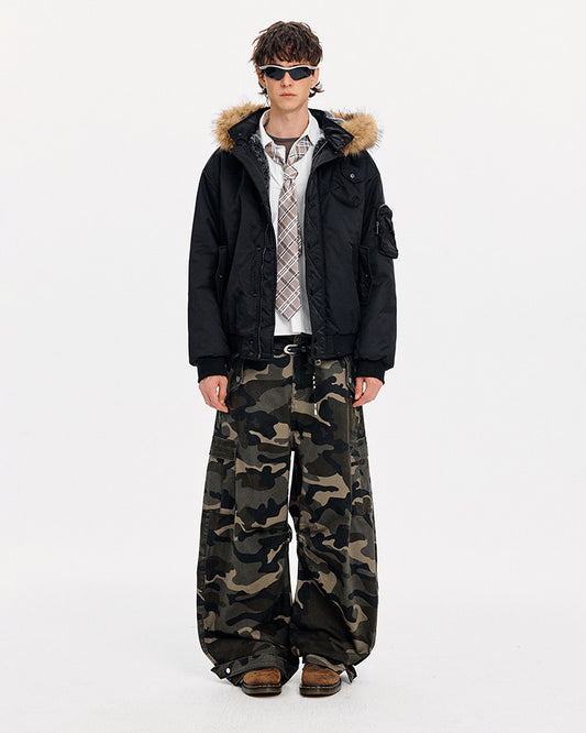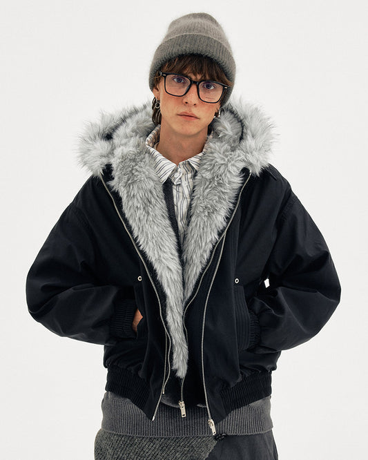 Unisex Loose-Fit Fur Collar Jacket