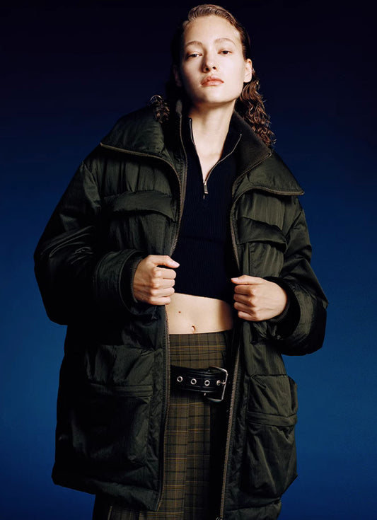 Adjustable Hood Double Zipper Casual Cotton Jacket