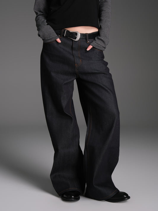 Solid color original denim pants