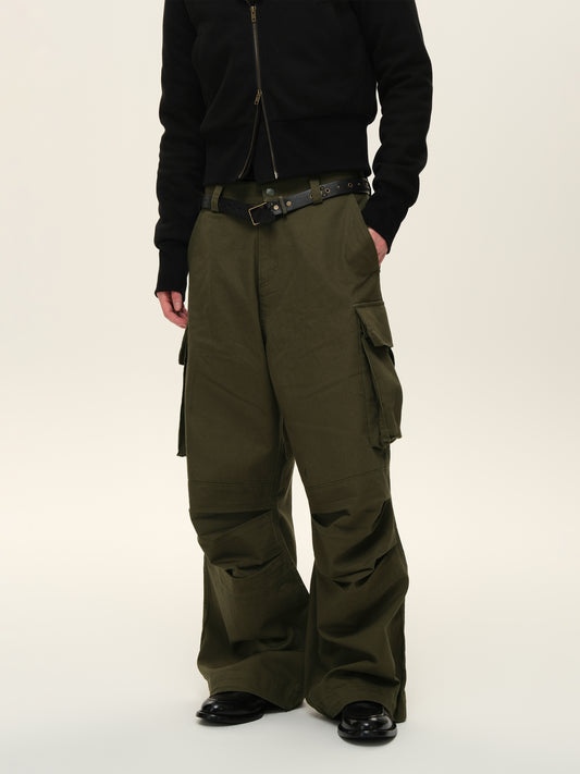 Knee-pleated Washed Casual Pants