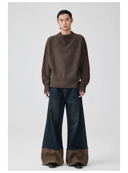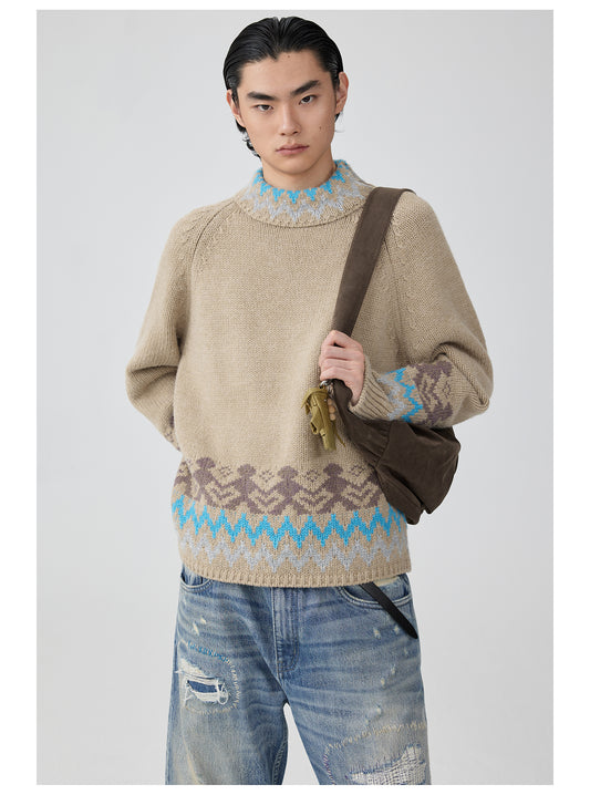 Ethnic Pattern Side Zip Turtleneck Sweater