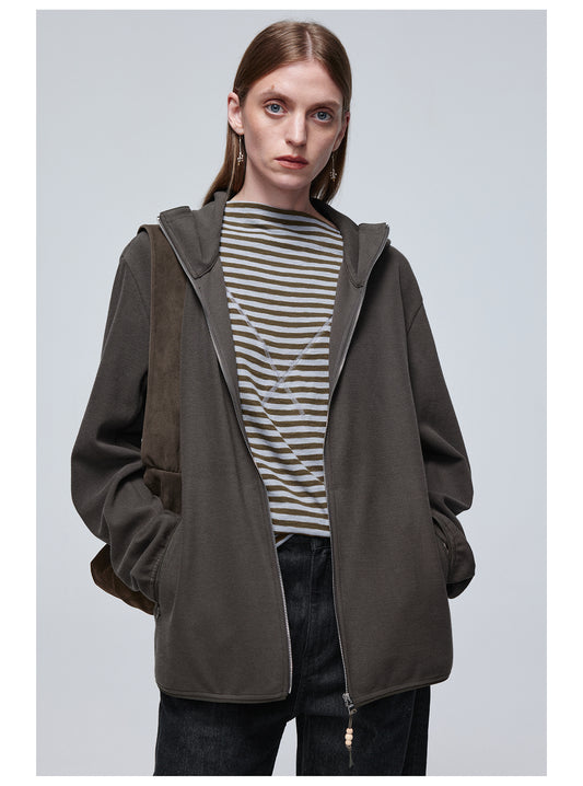 Zipper Basic Hooded Sweatshirt