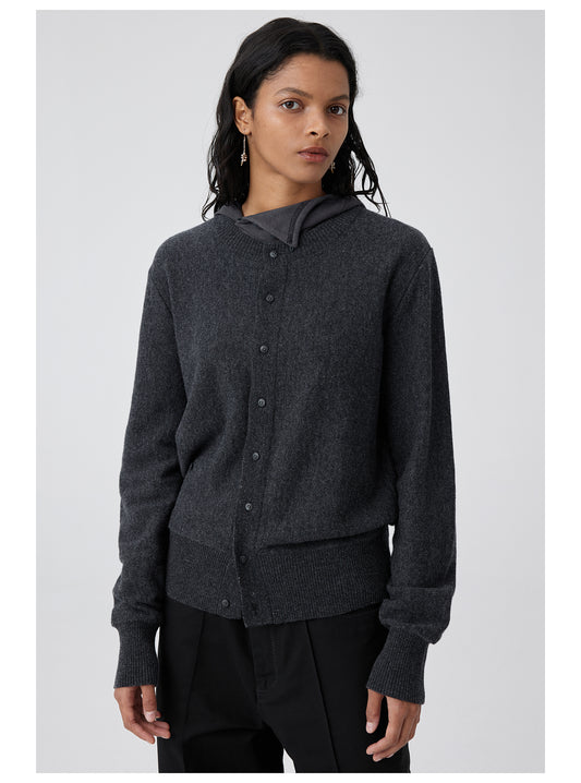Light Wool Crew Neck Cardigan