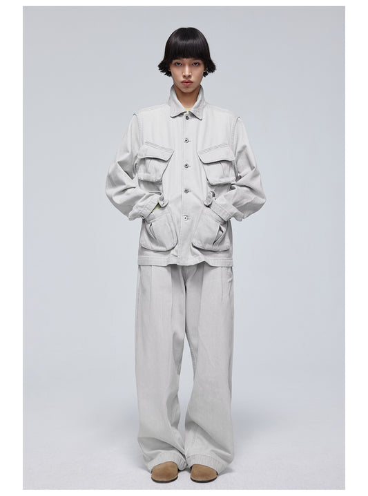 Washed Straight Pleated Jeans