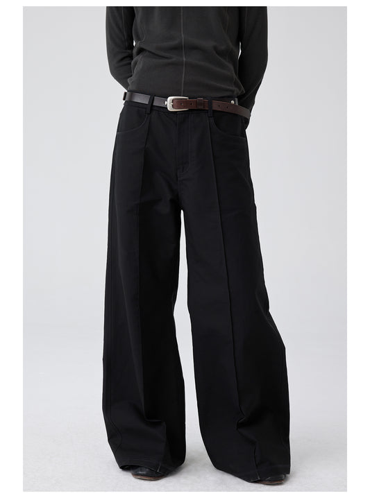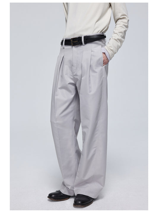 Pleated slim straight slacks pants