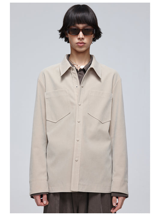 Lapel Suede Shirt Jacket