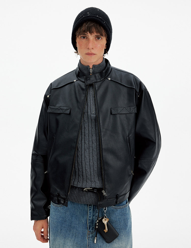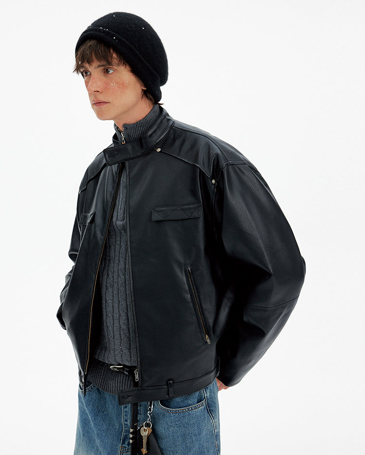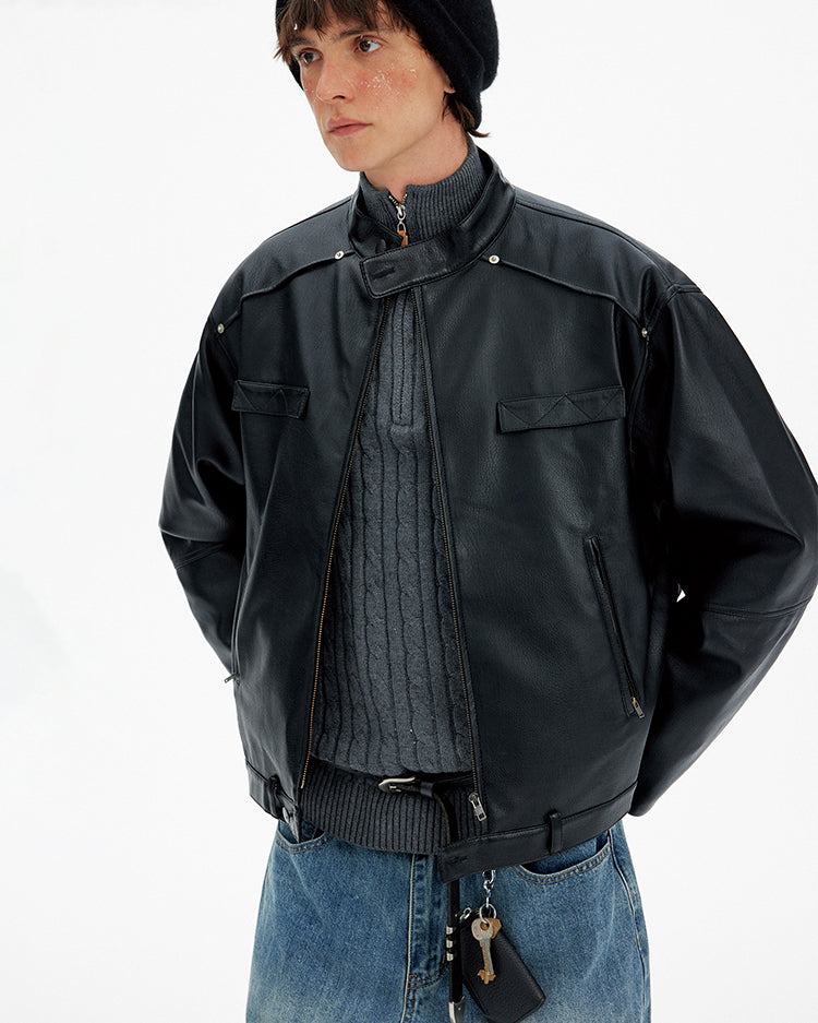 Deconstructed PU Leather Jacket