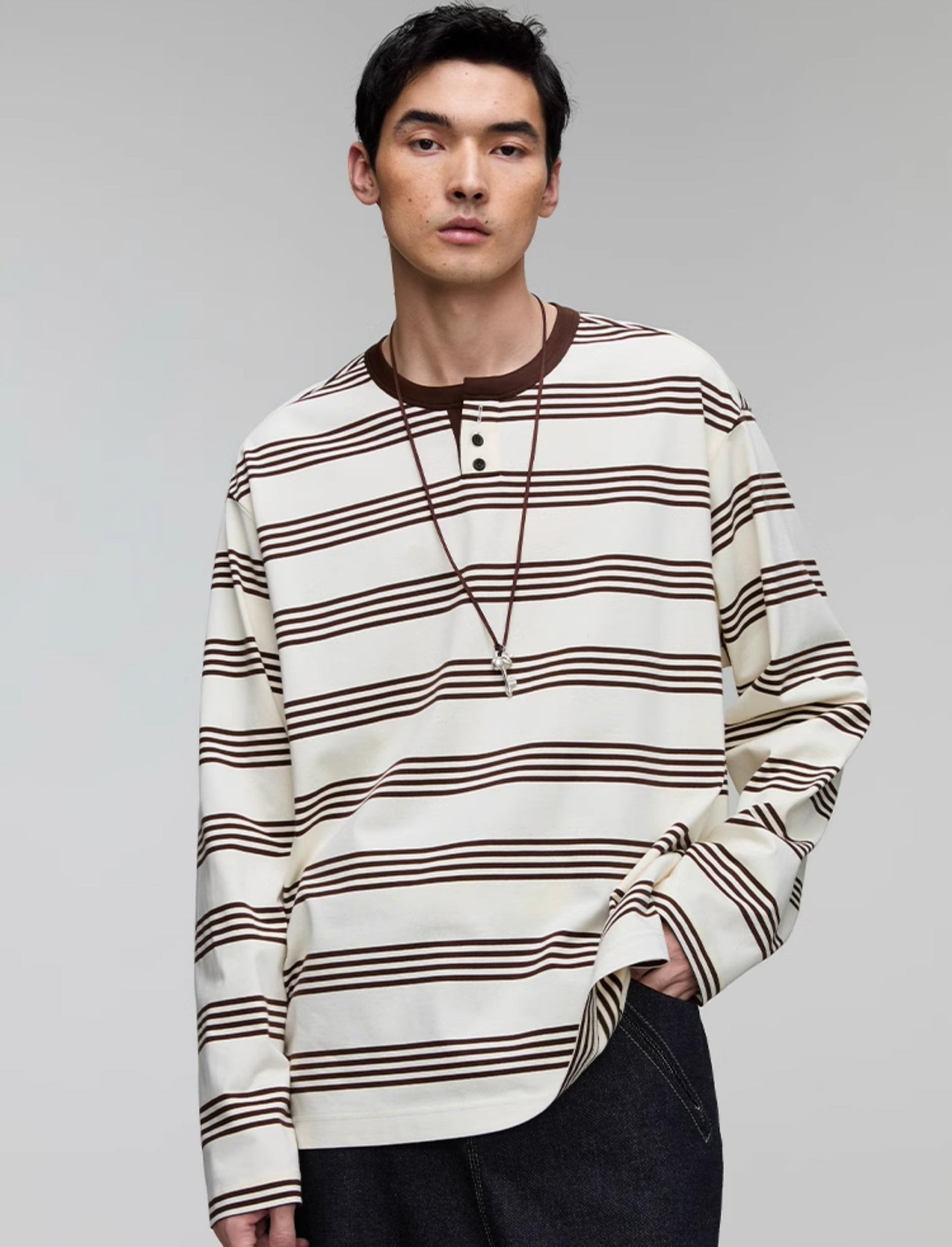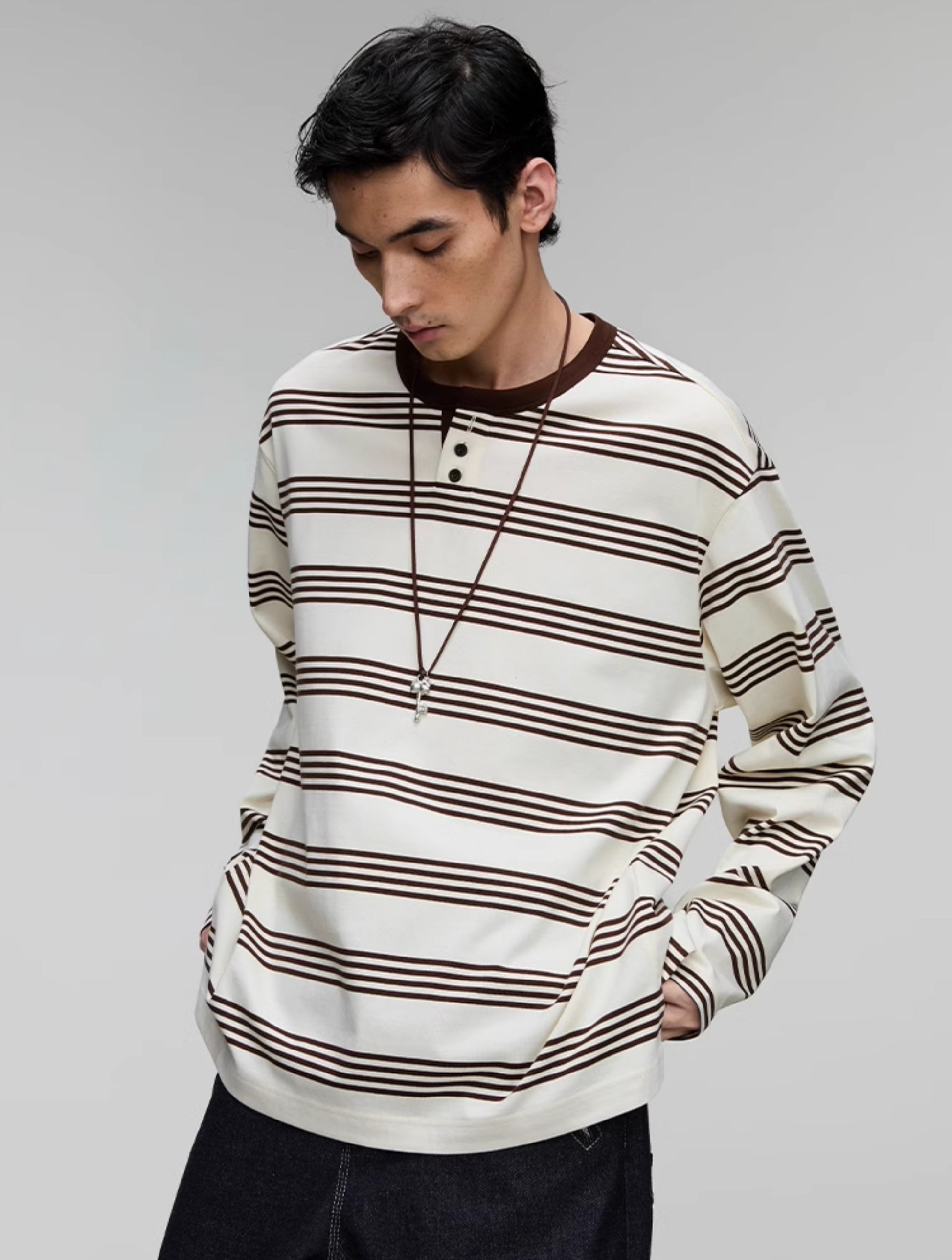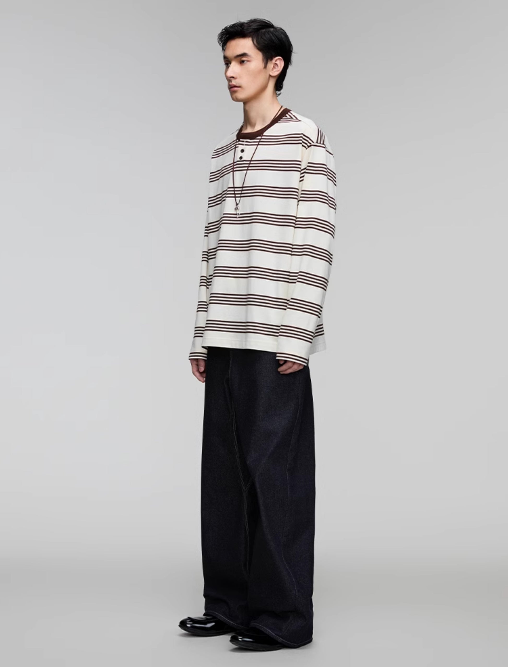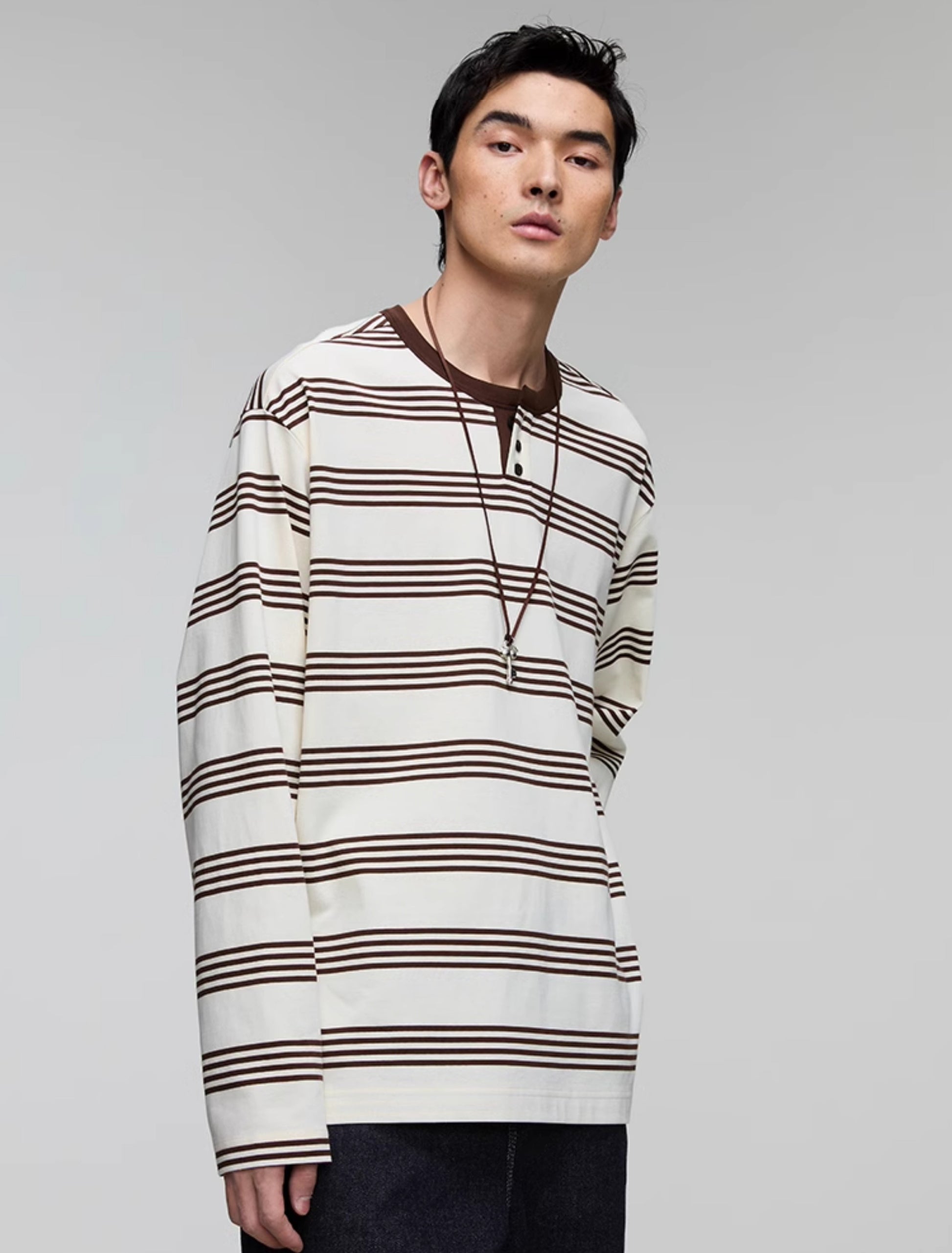 Henry Collar Stripe T-Shirt