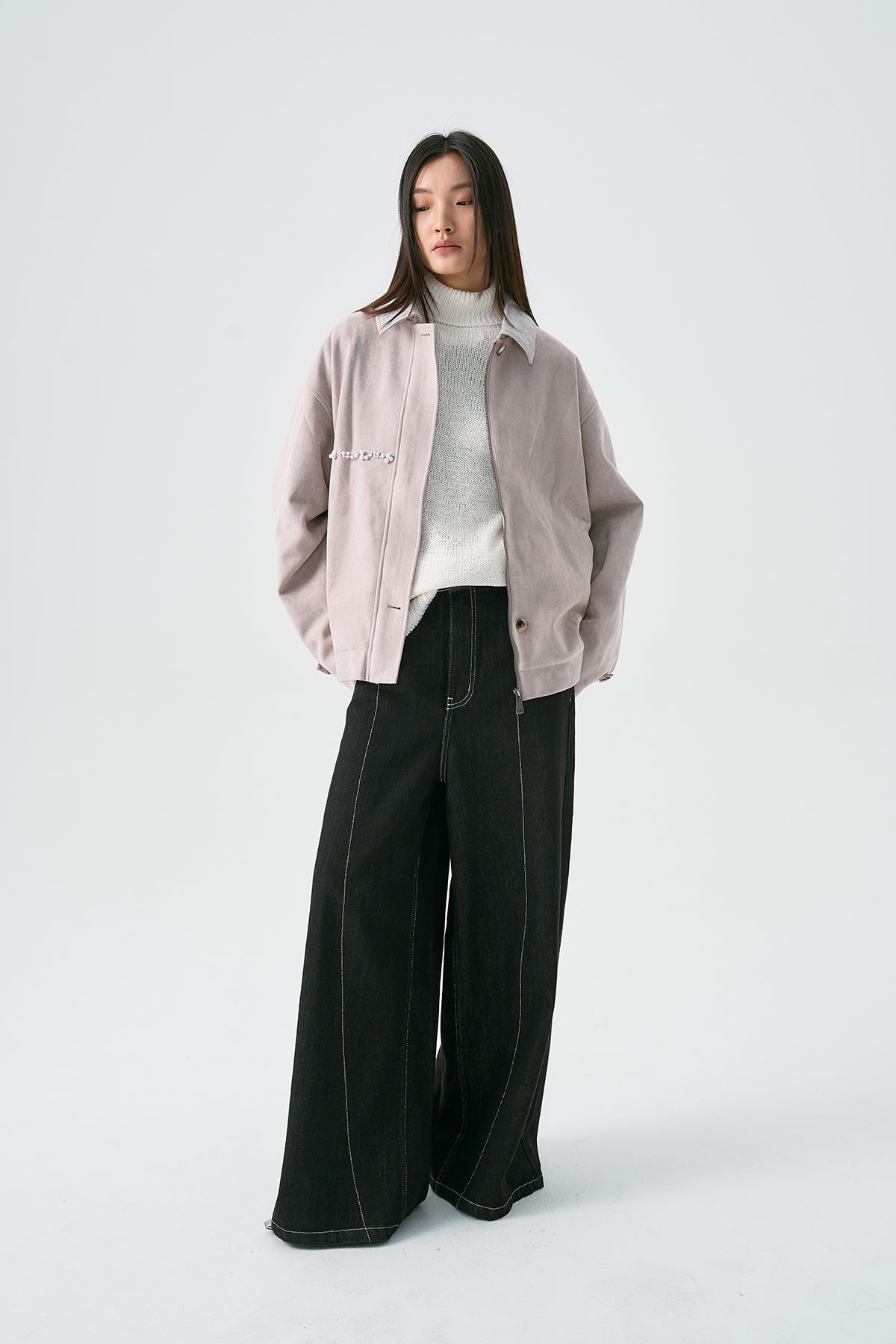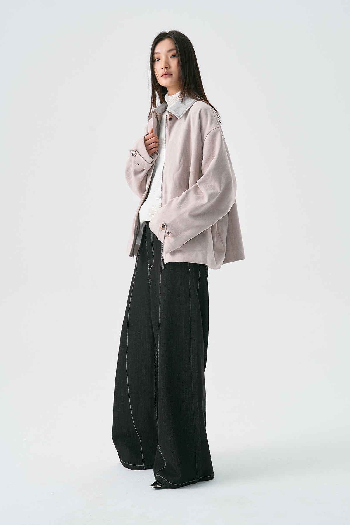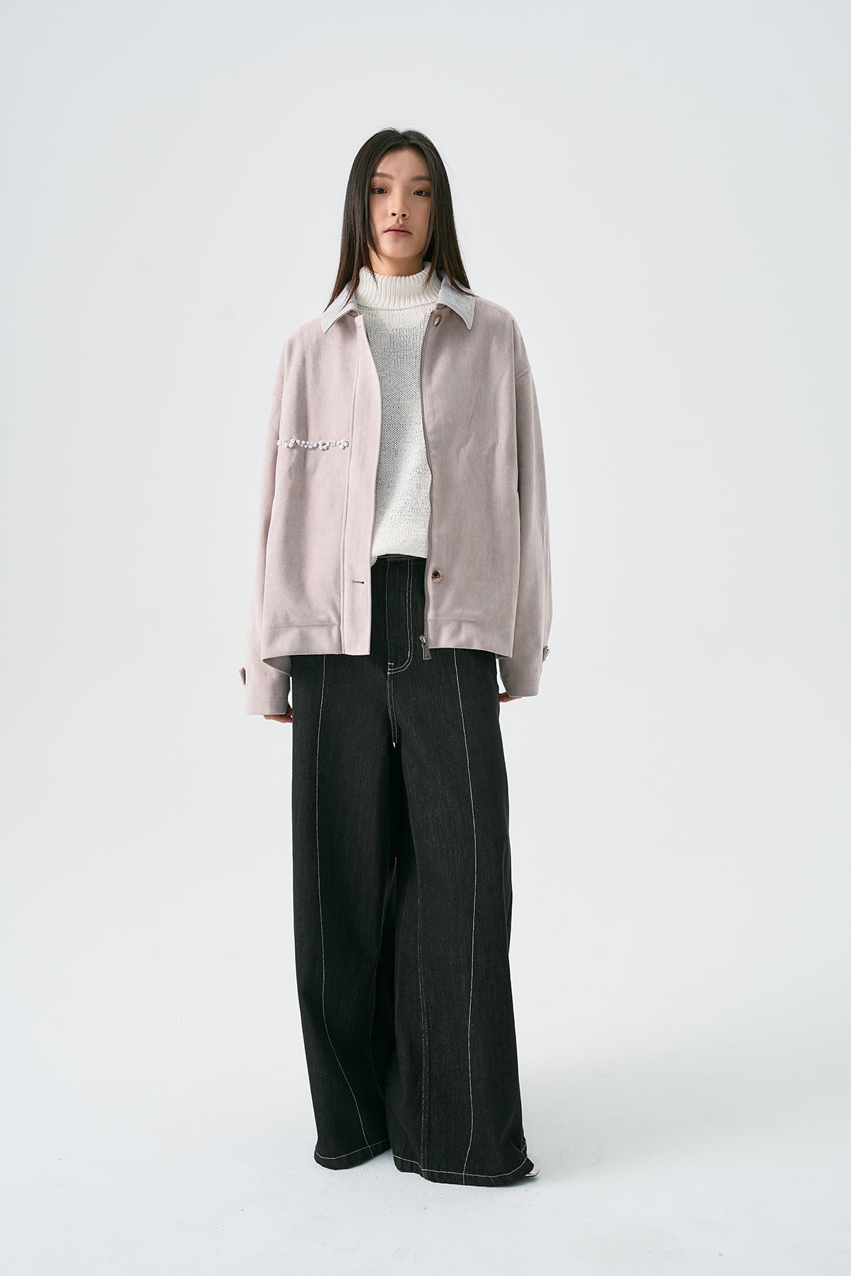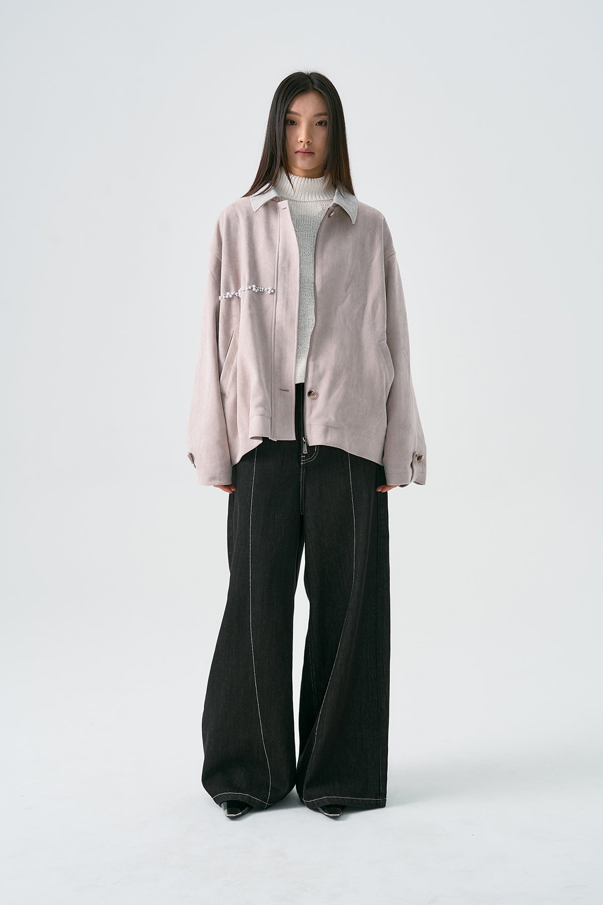 Pearl Finish Faux Suede Jacket