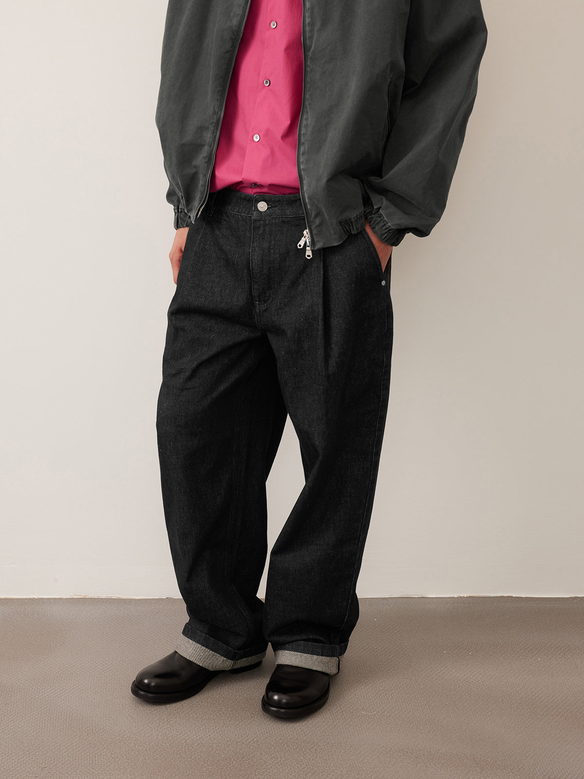 Single Pleats Loose Straight Jeans 12.25 oz.