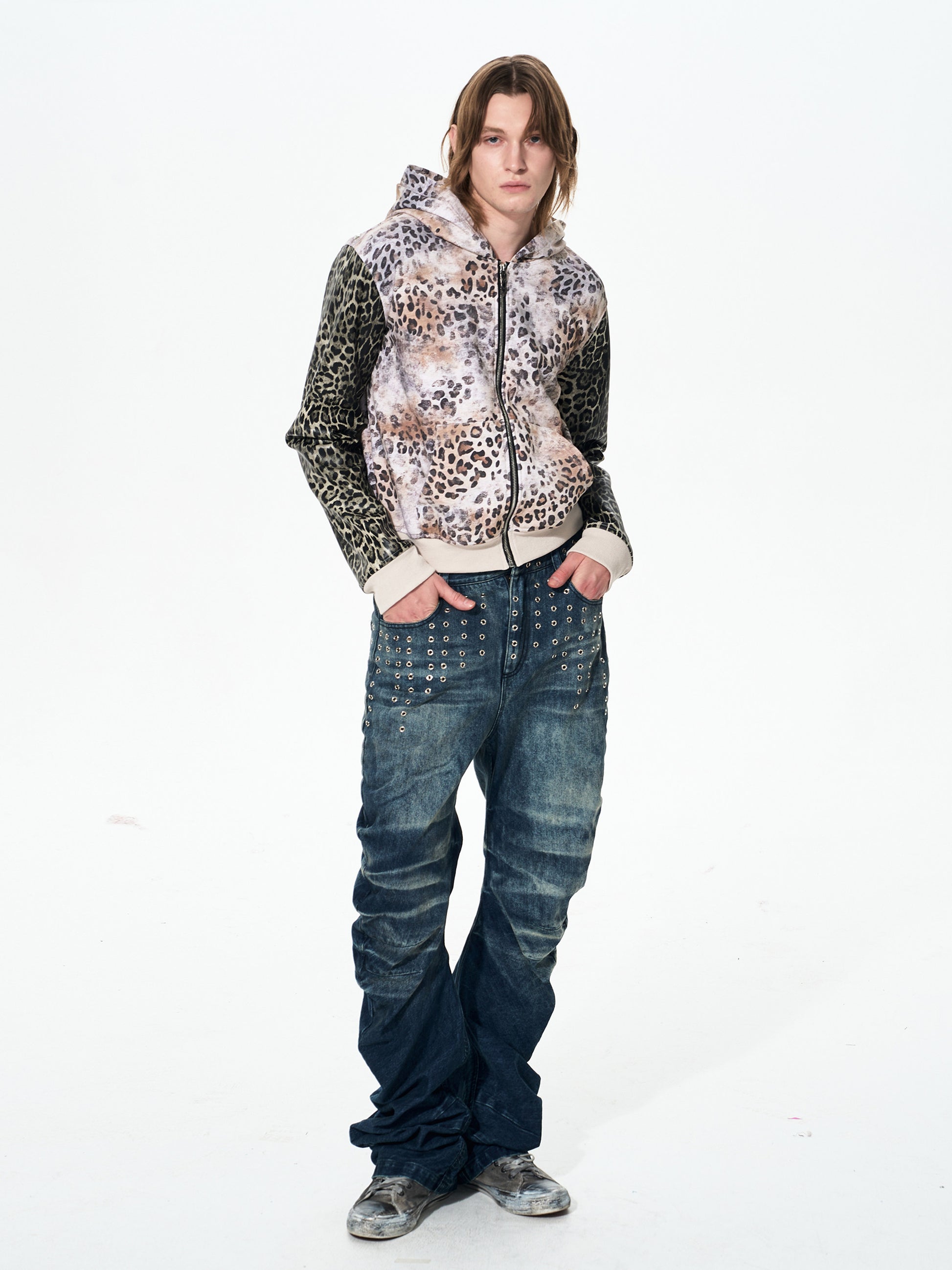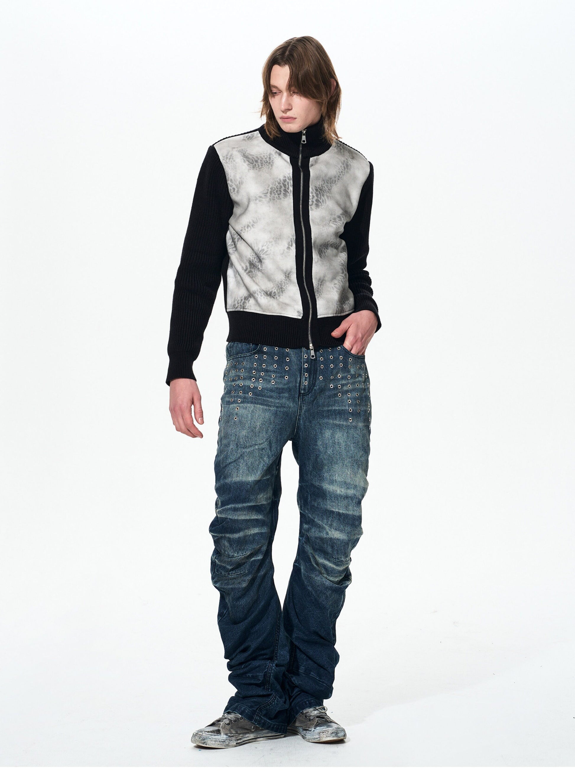 Wash-processed Curved Blade Jeans