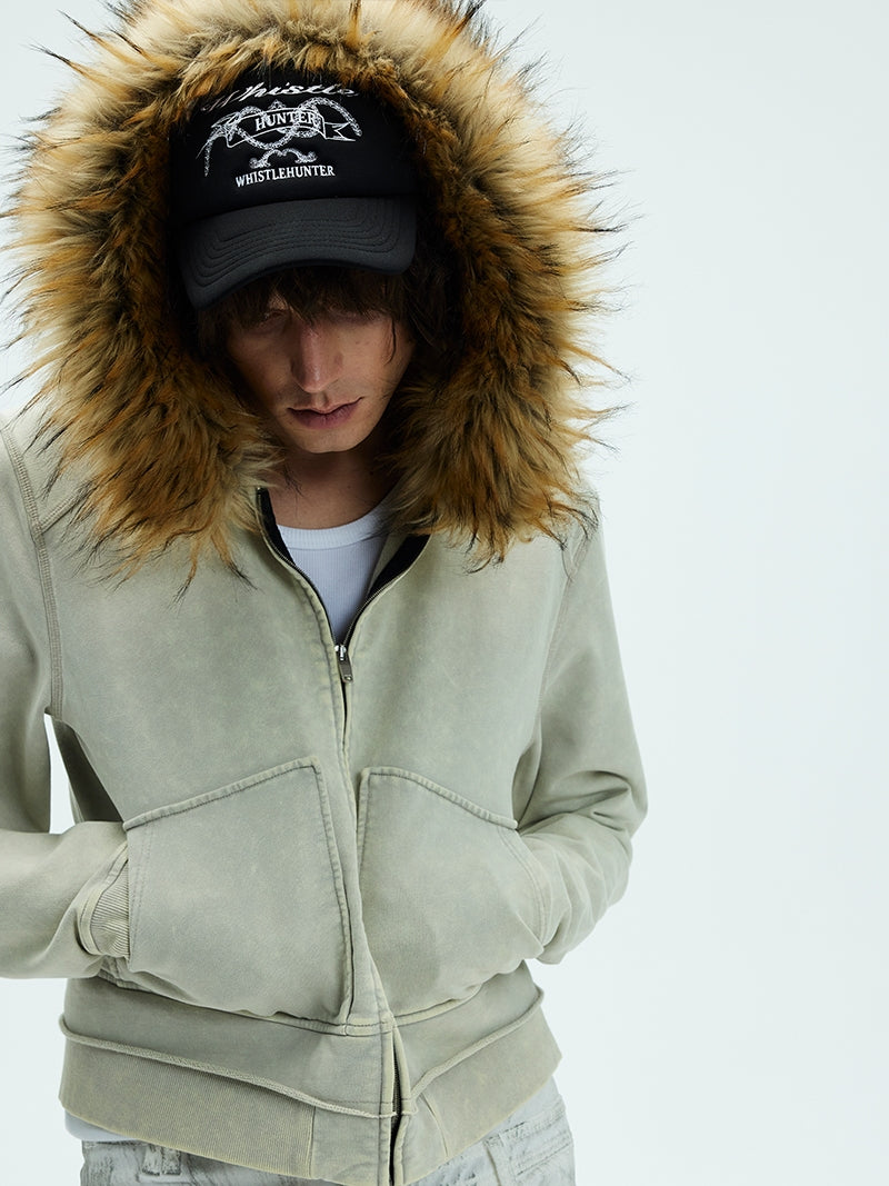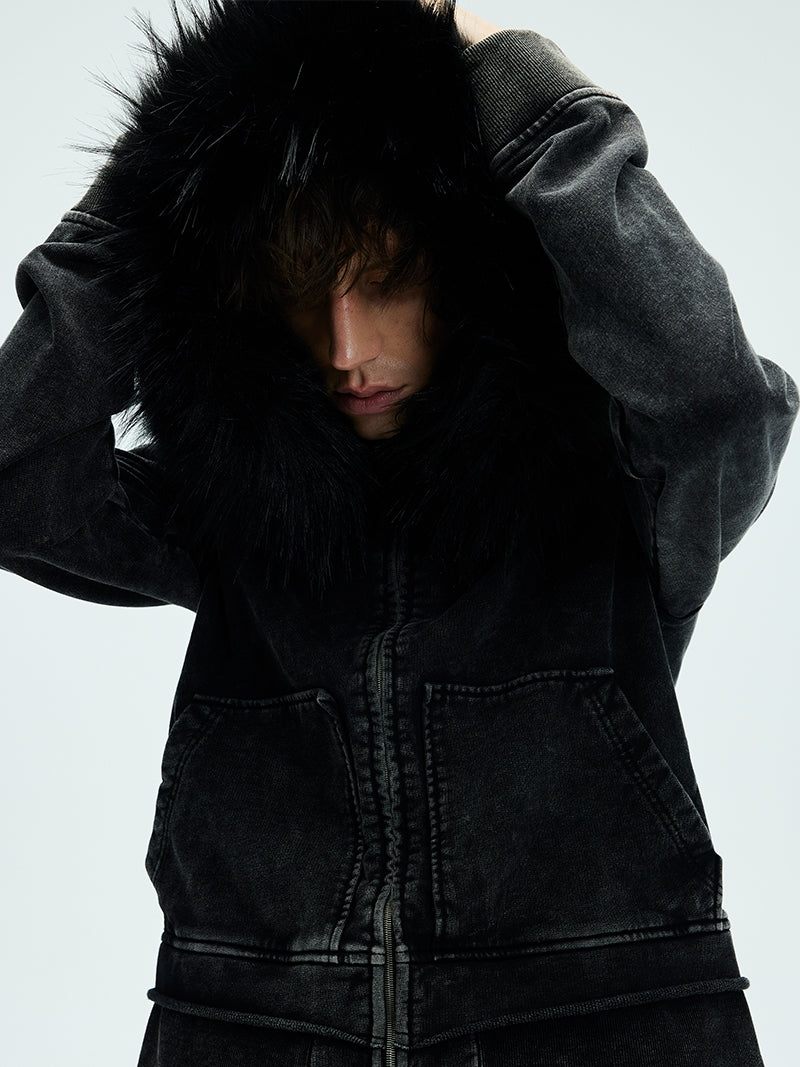 Detachable fur collar Damaged sweatshirt