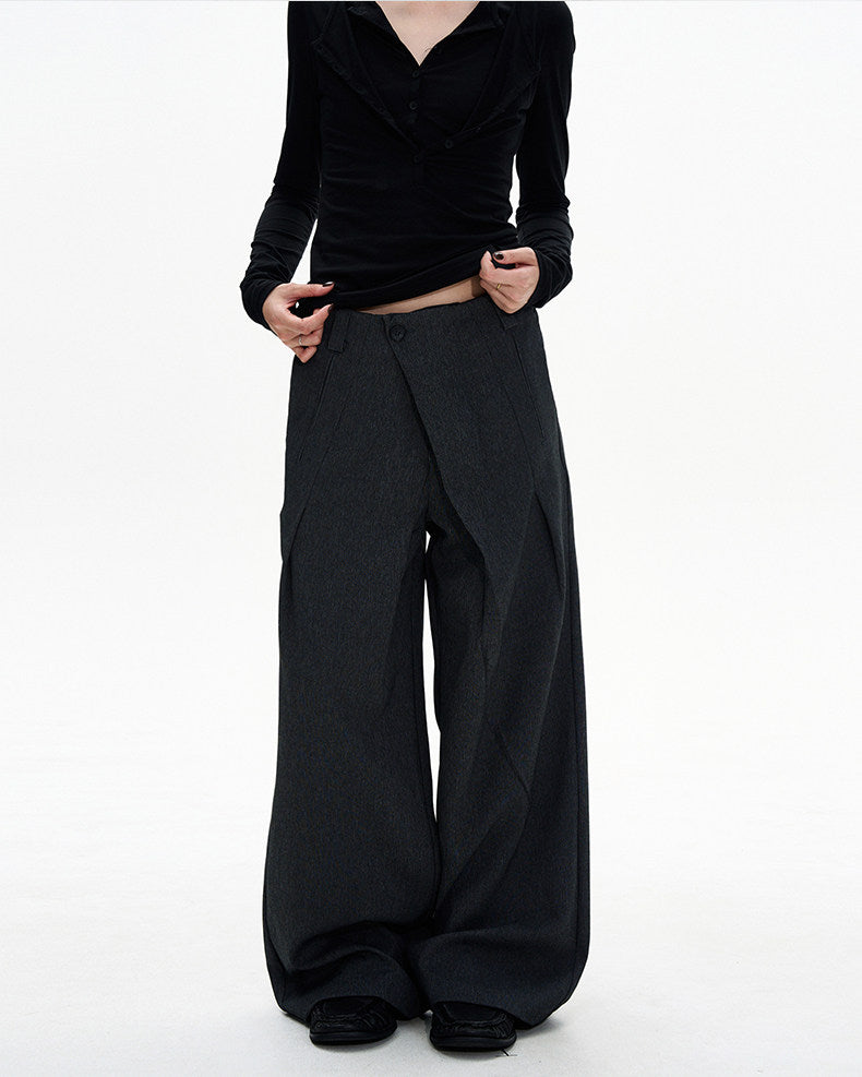 Diagonal-Pocket Relaxed Fit Casual Pants