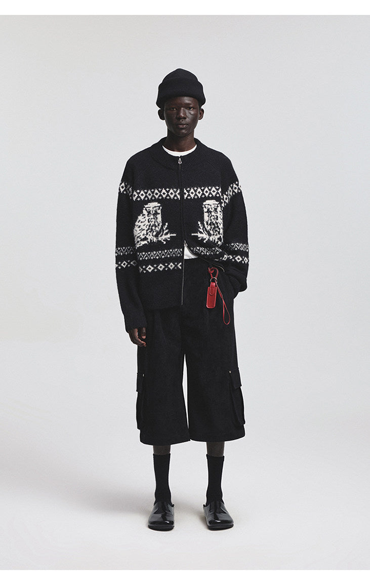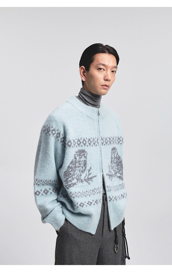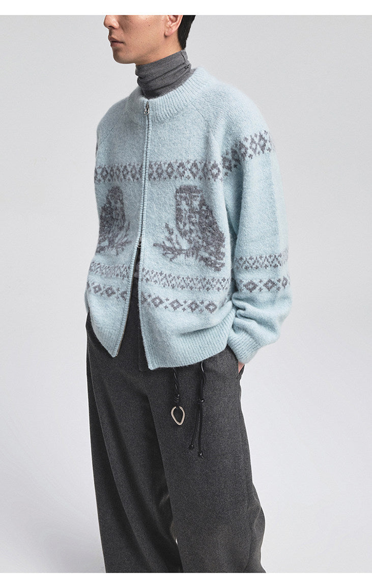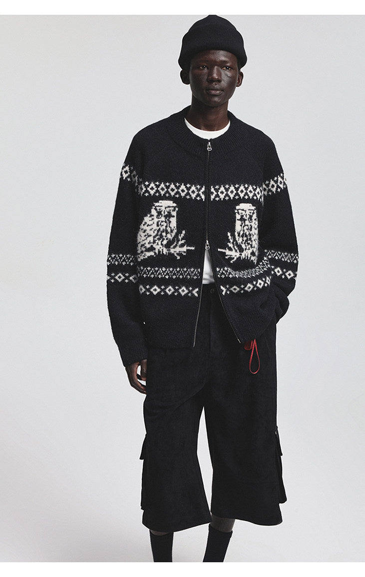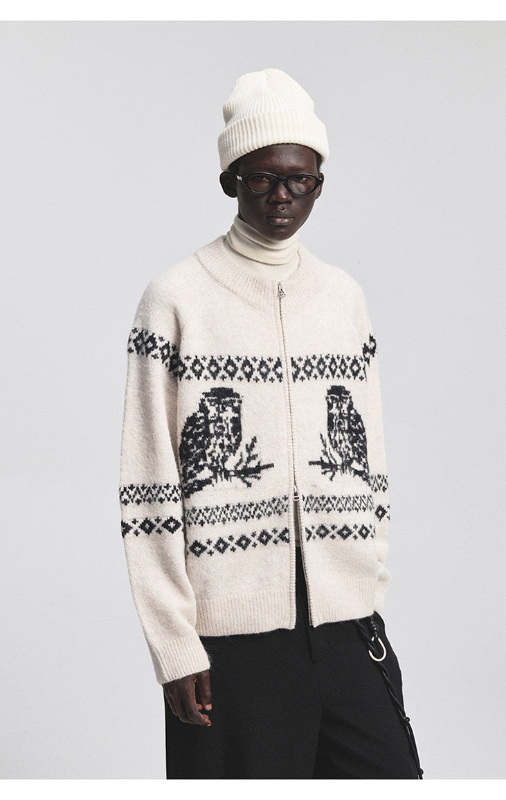 Vintage Animal Jacquard Zipper Cardigan