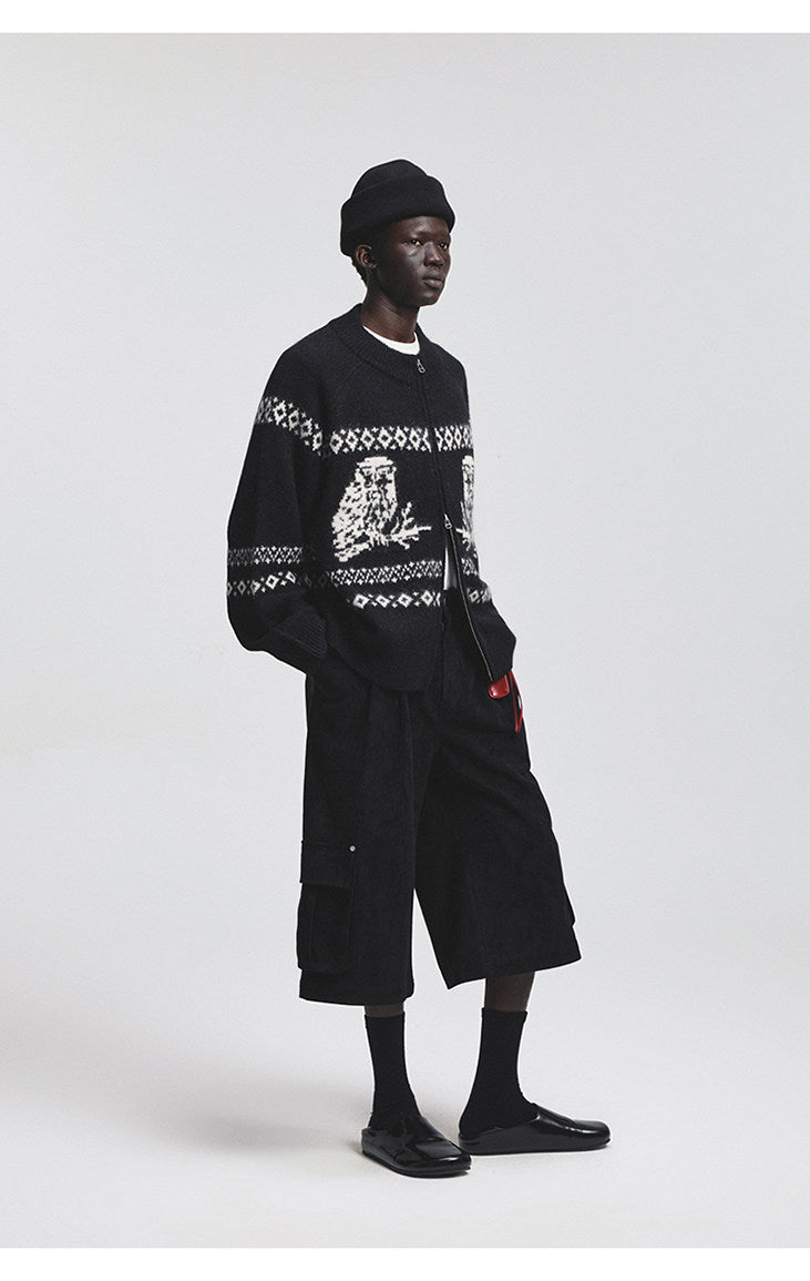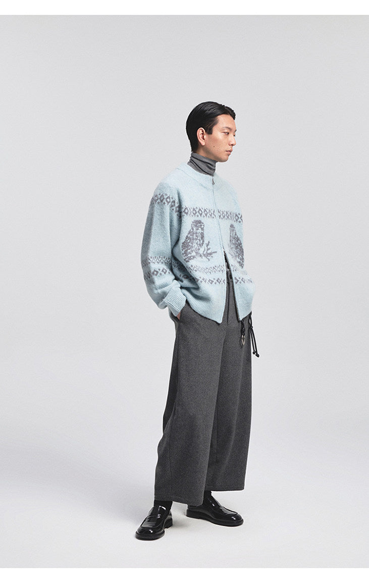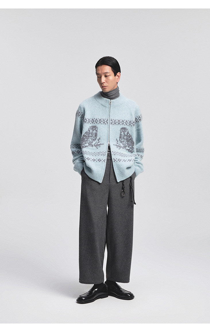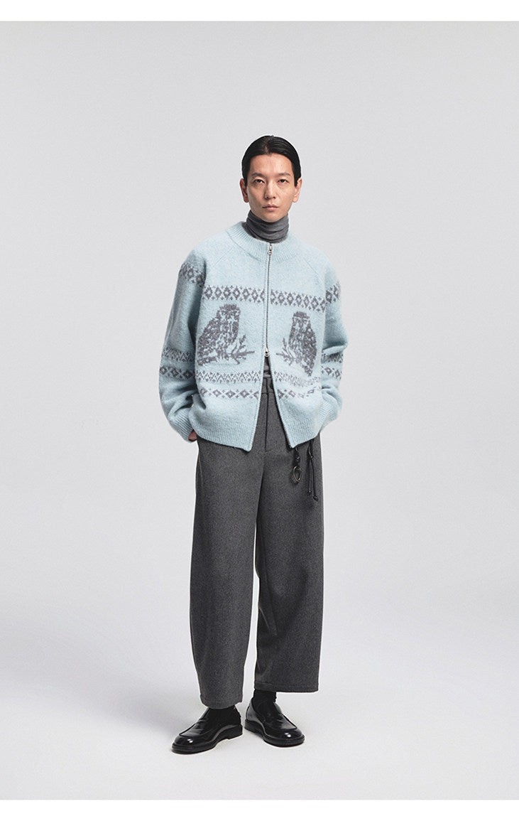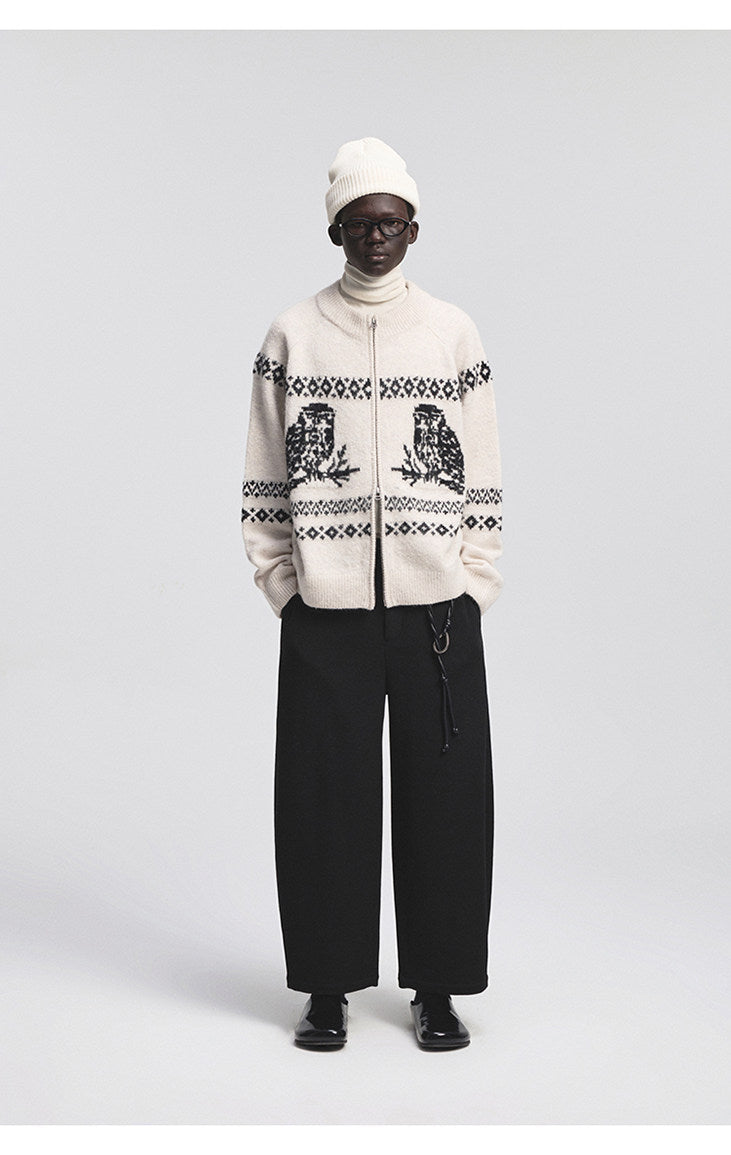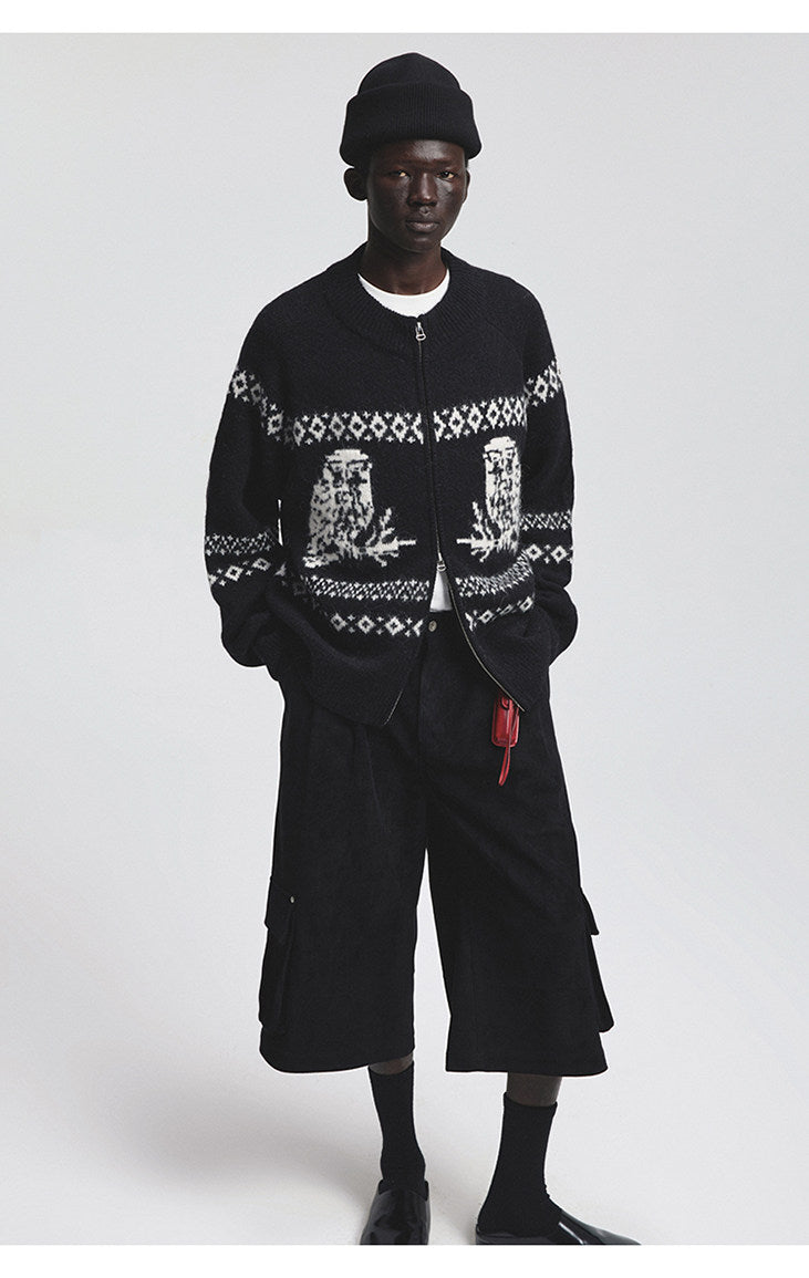 Vintage Animal Jacquard Zipper Cardigan