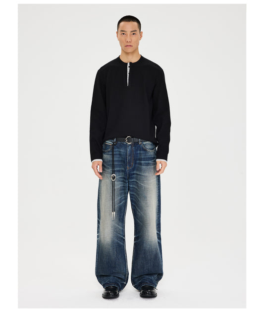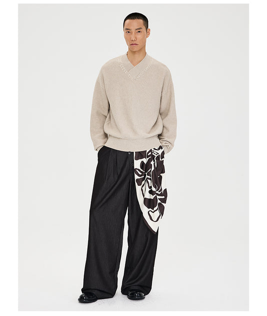 Diagonal Placket Casual Pants