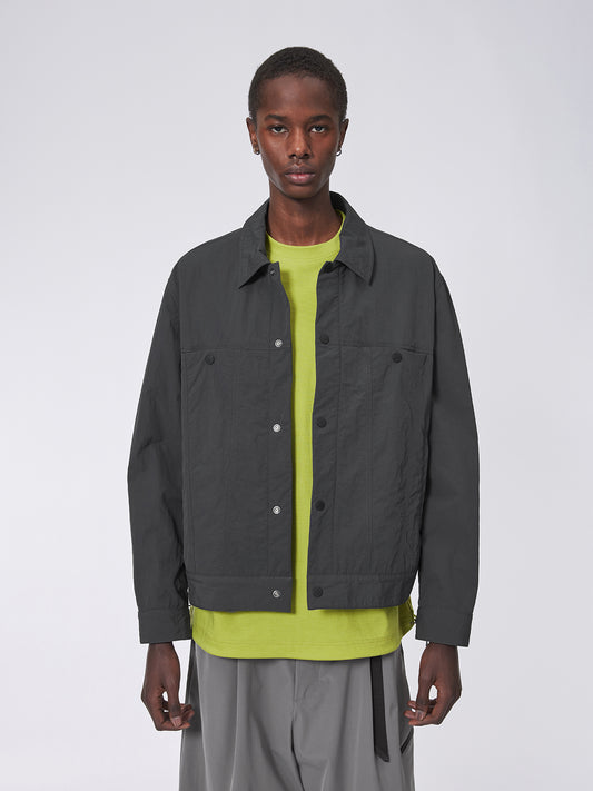 Short Wide Wrinkled Nylon Jacket
