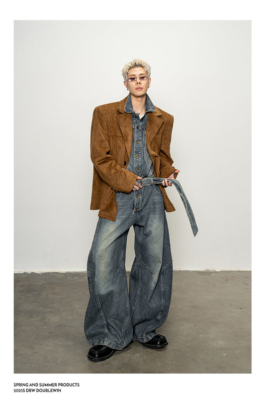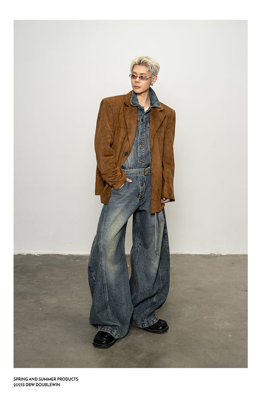 Shoulder Pad Denim Jumpsuit