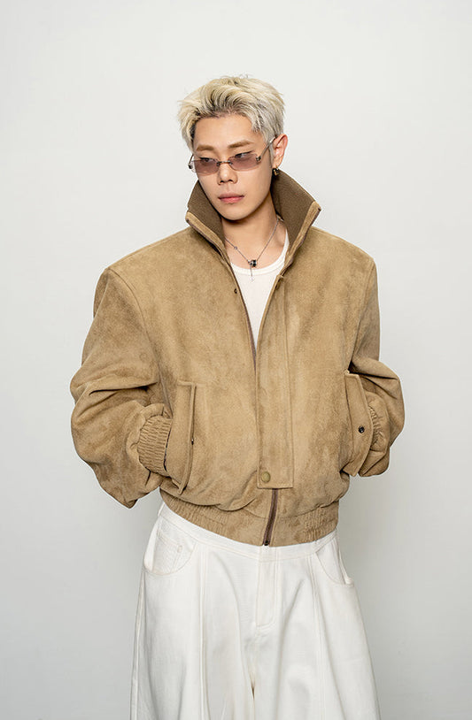 Suede Rib High-Neck Short Jacket