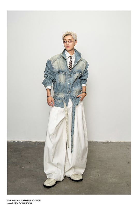 Large Stand Collar Denim Trench Coat