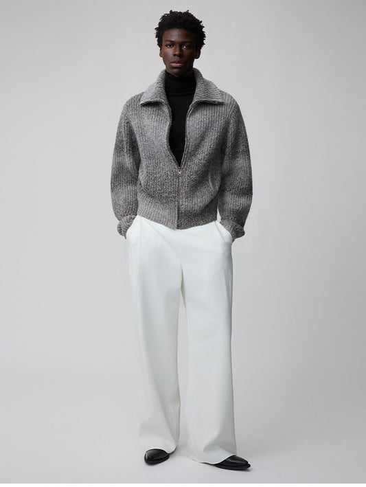 Loose-Fit Curved Sleeve Zip Cardigan