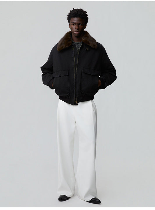 Detachable fur collar bomber jacket