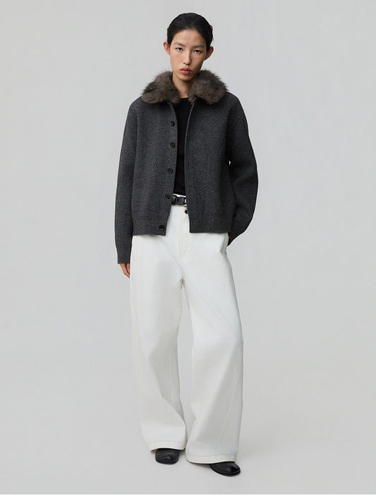 Detachable Fur Collar Cardigan