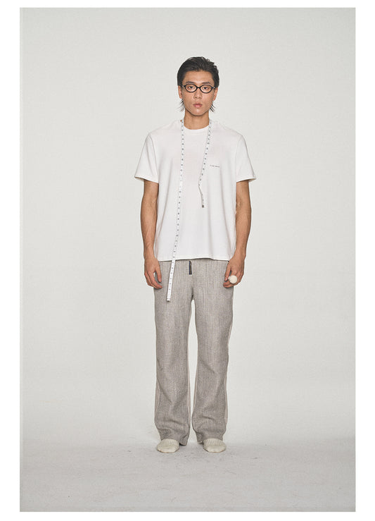 Cotton and linen blend straight casual pants