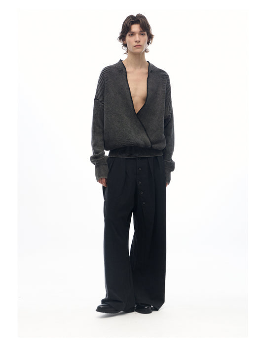 Washed Damaged Buttoned Sweater