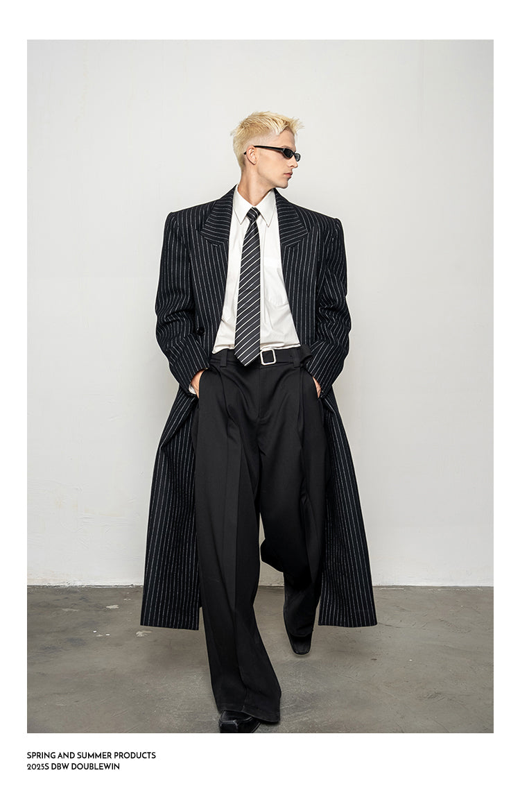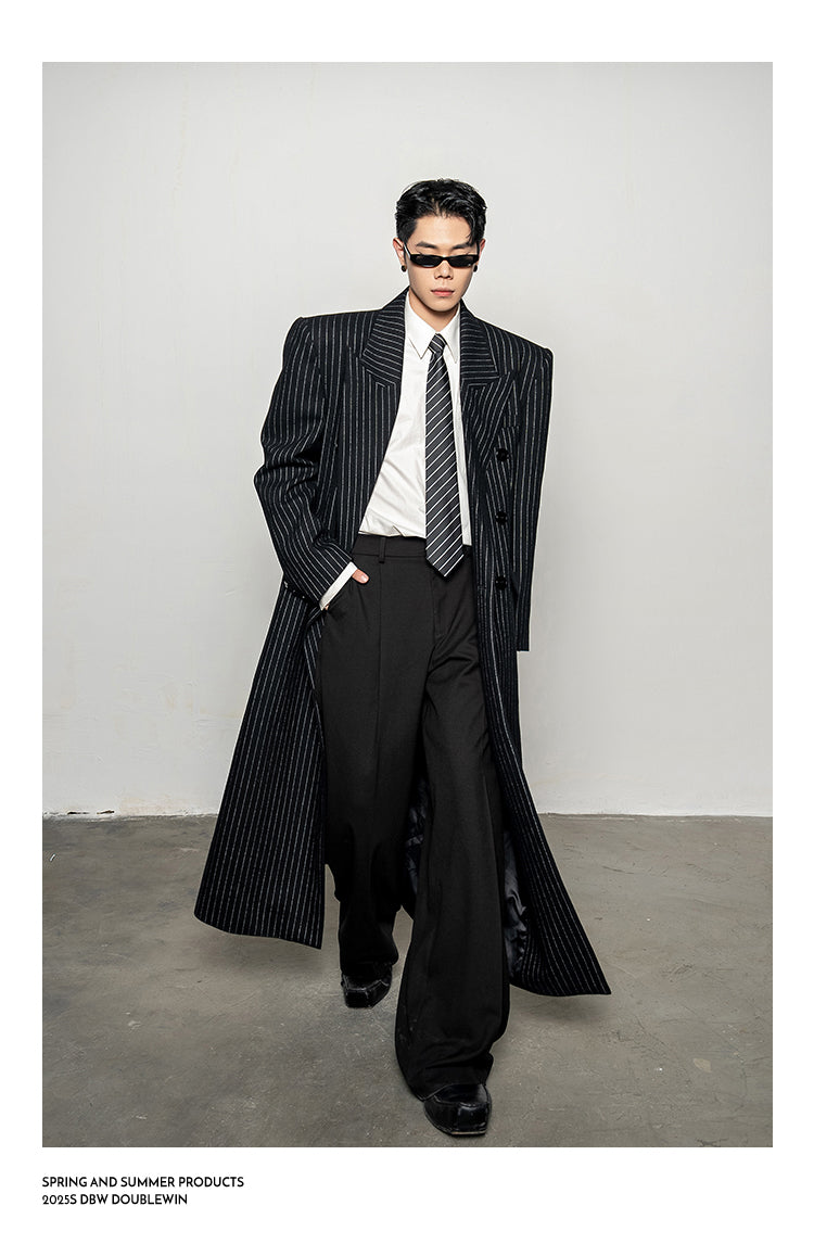 Wool Blend Striped Long Coat