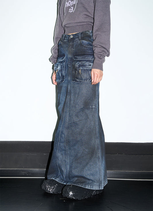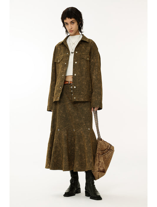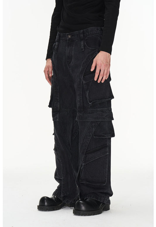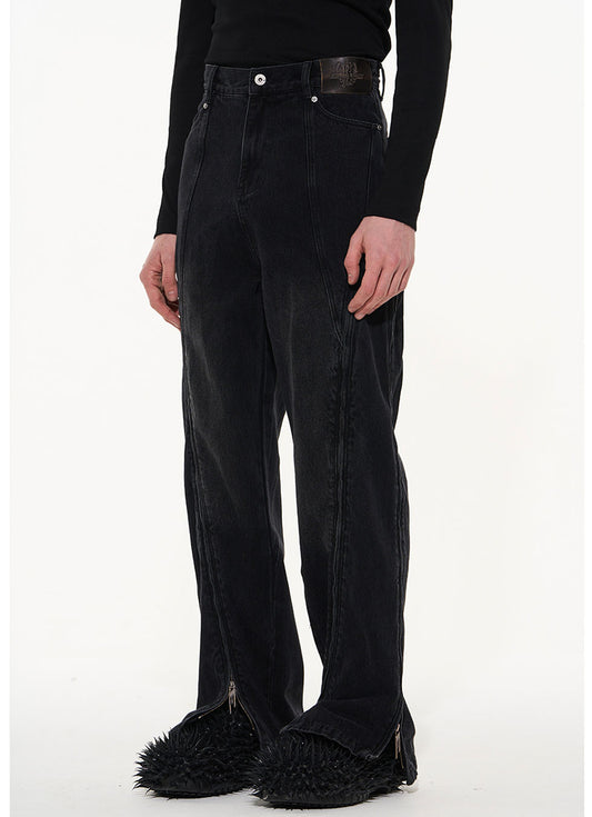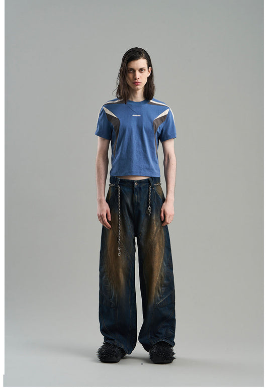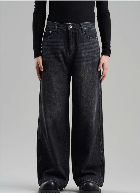 Damaged Rust Stitch Loose Fit Mid Rise Denim Pants