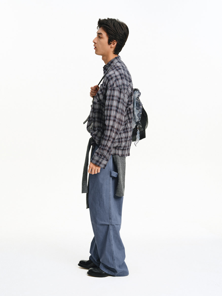 3D Pleated Wide-Leg Pants