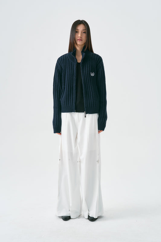 Wool-blend turtleneck cardigan