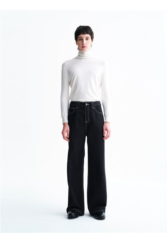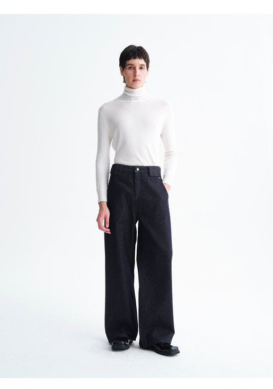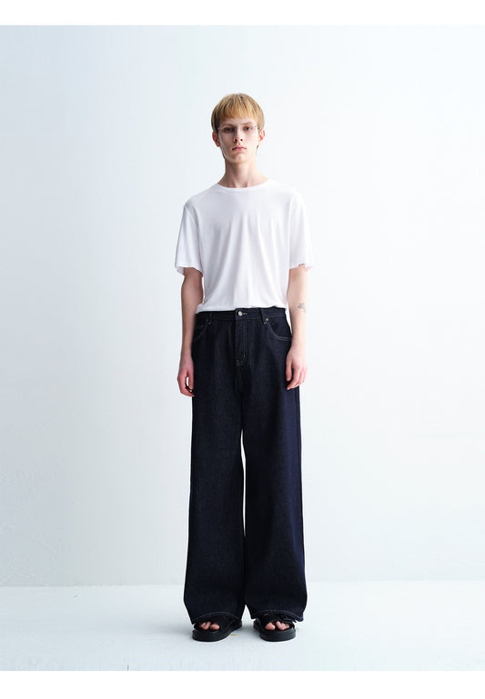 Wide-Leg Raw Denim Pants