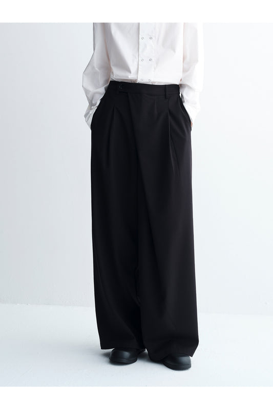 Diagonal Placket Casual Wide-Leg Pants