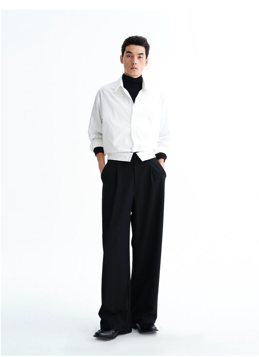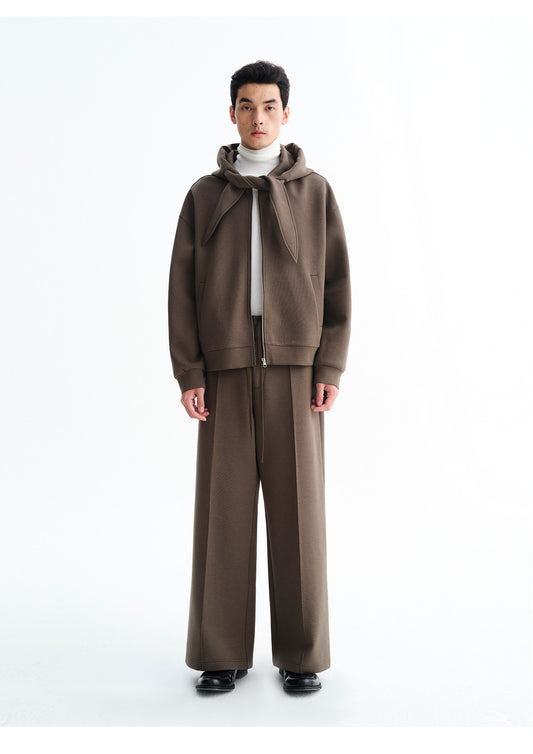 Wool Blend Double-Pleated Casual Pants