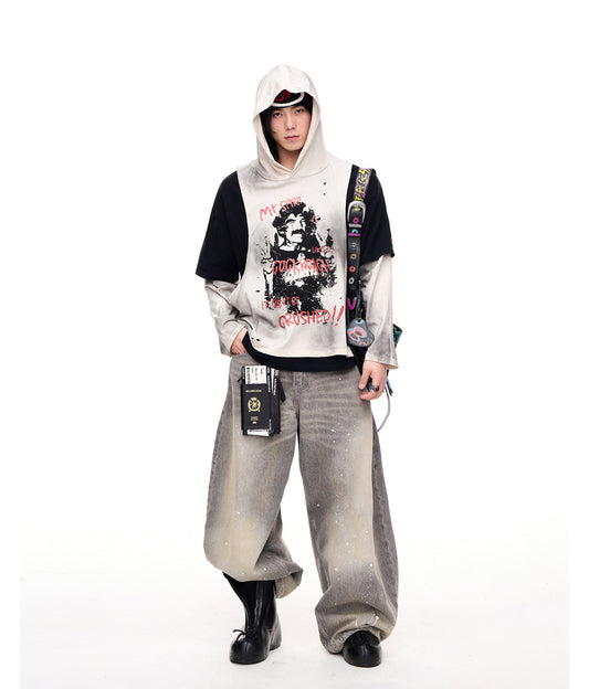 Damaged Faux Two-piece T-shirt with Hood