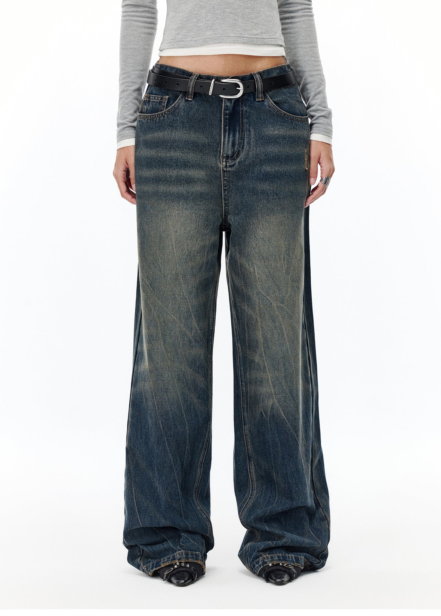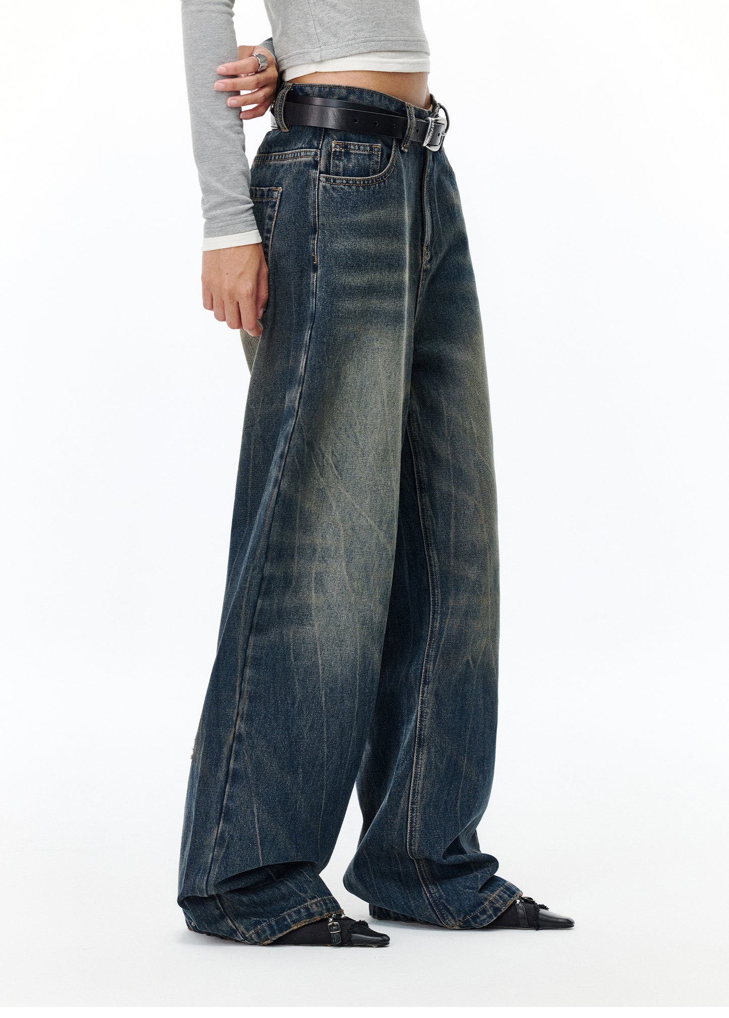 Damaged Draped Jeans